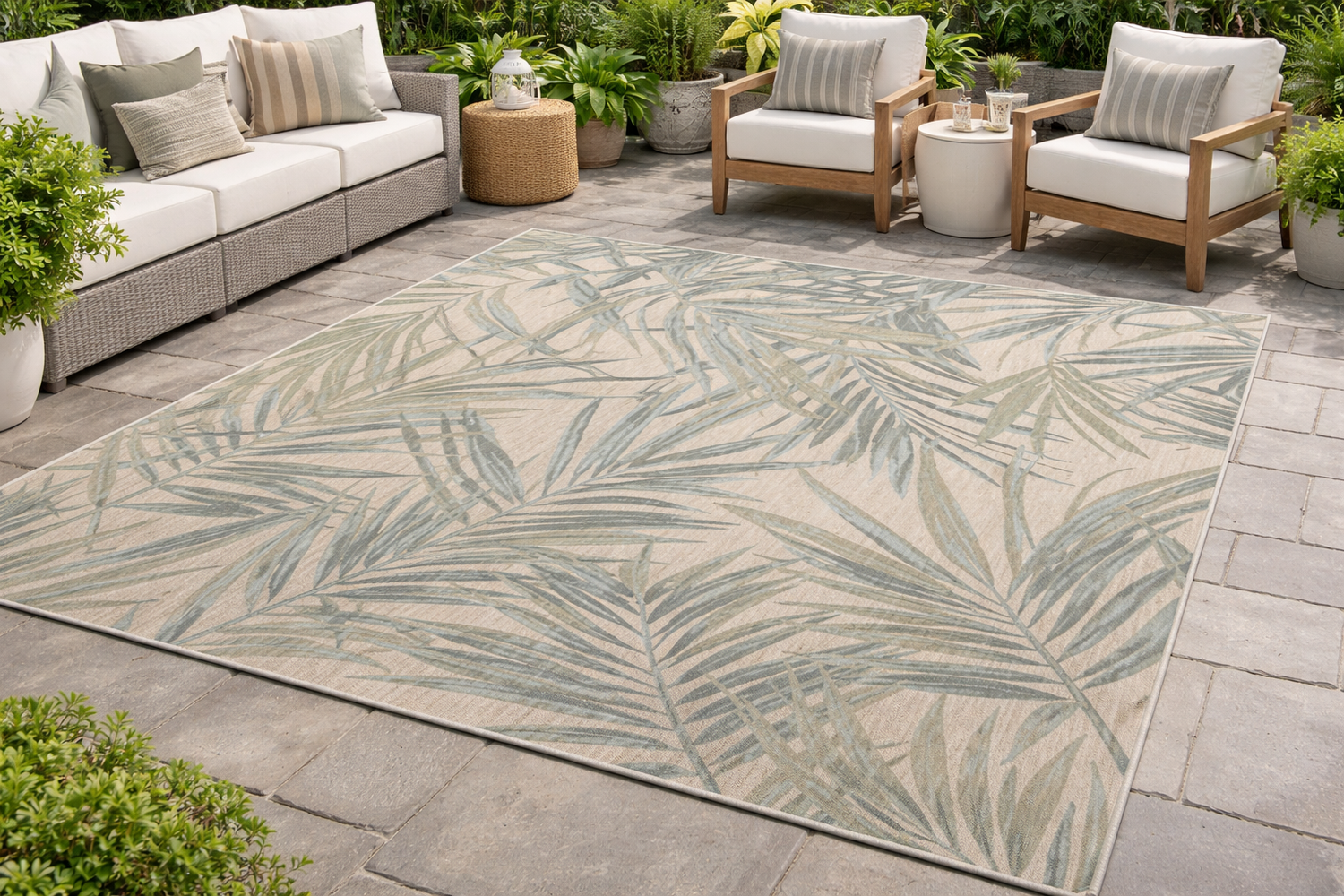 Tapis extérieur Paradise Cove 100 % polyester recyclé – Motif feuilles contemporain