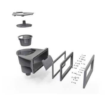 Robust skimmer body with easy snap-on lid. Compatible with 1½" male threaded Carvin fittings. -