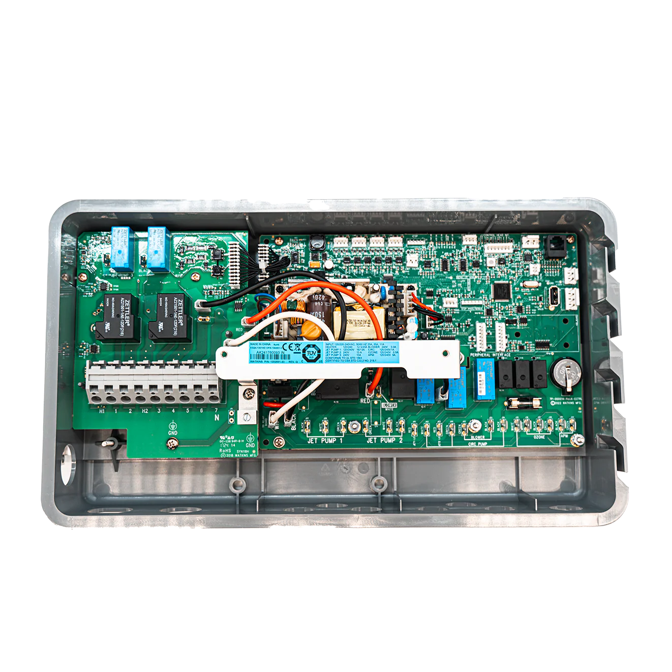 The Hot Spring IQ2020 Eagle 79781 control box is the official replacement part (OEM) designed for Hot Spring and Limelight spas from the year 2024 onward. This electronic module centralizes and manages all essential spa functions, including heating, pumps, lighting, and communication with the control panel.