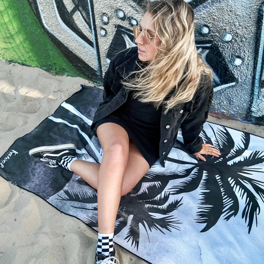 Kawelä's flyé microfiber, which stands out with its embossed texture, has been designed so that the sand slides directly onto the ground. The whole result is incredibly soft.