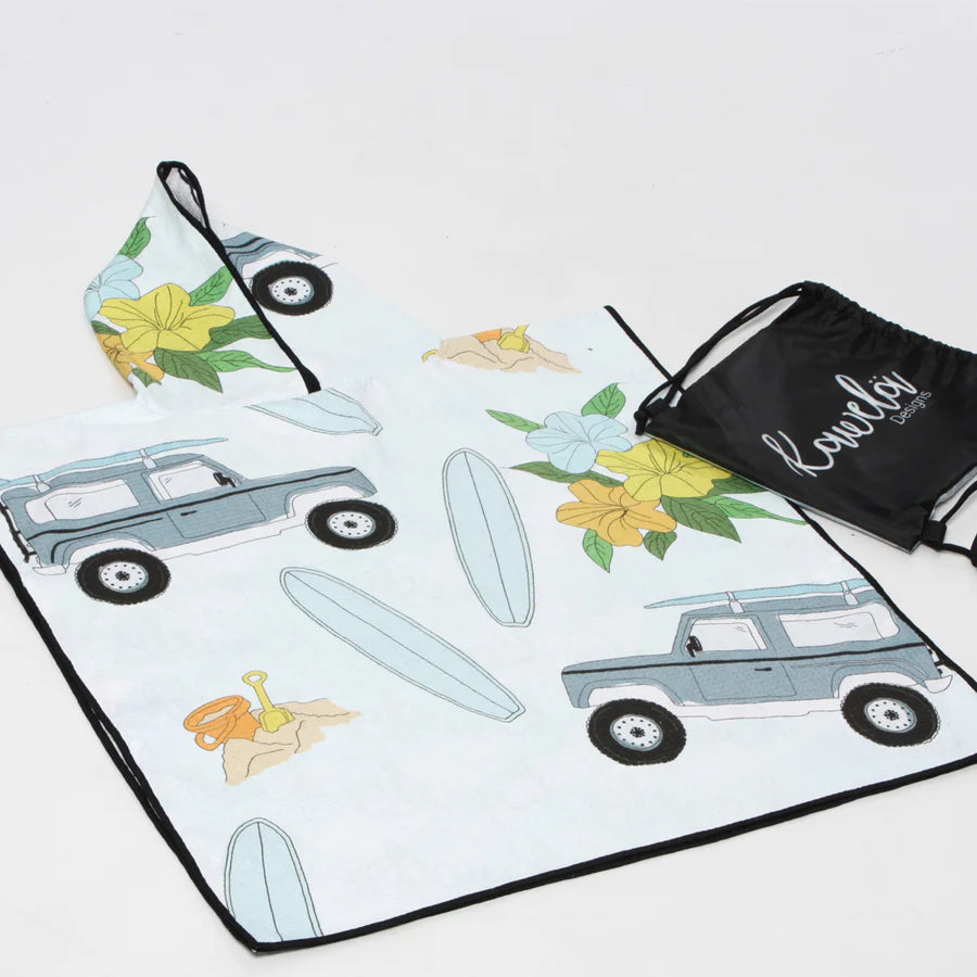 Kawelä's flyé microfibre, which stands out with its waffle texture, has been designed so that the sand slides directly on the ground. The whole result of an incredible softness.