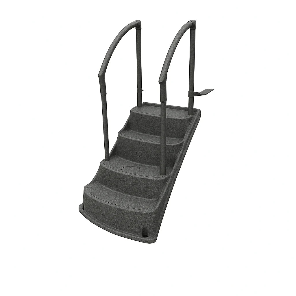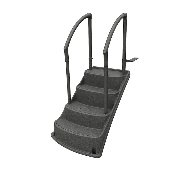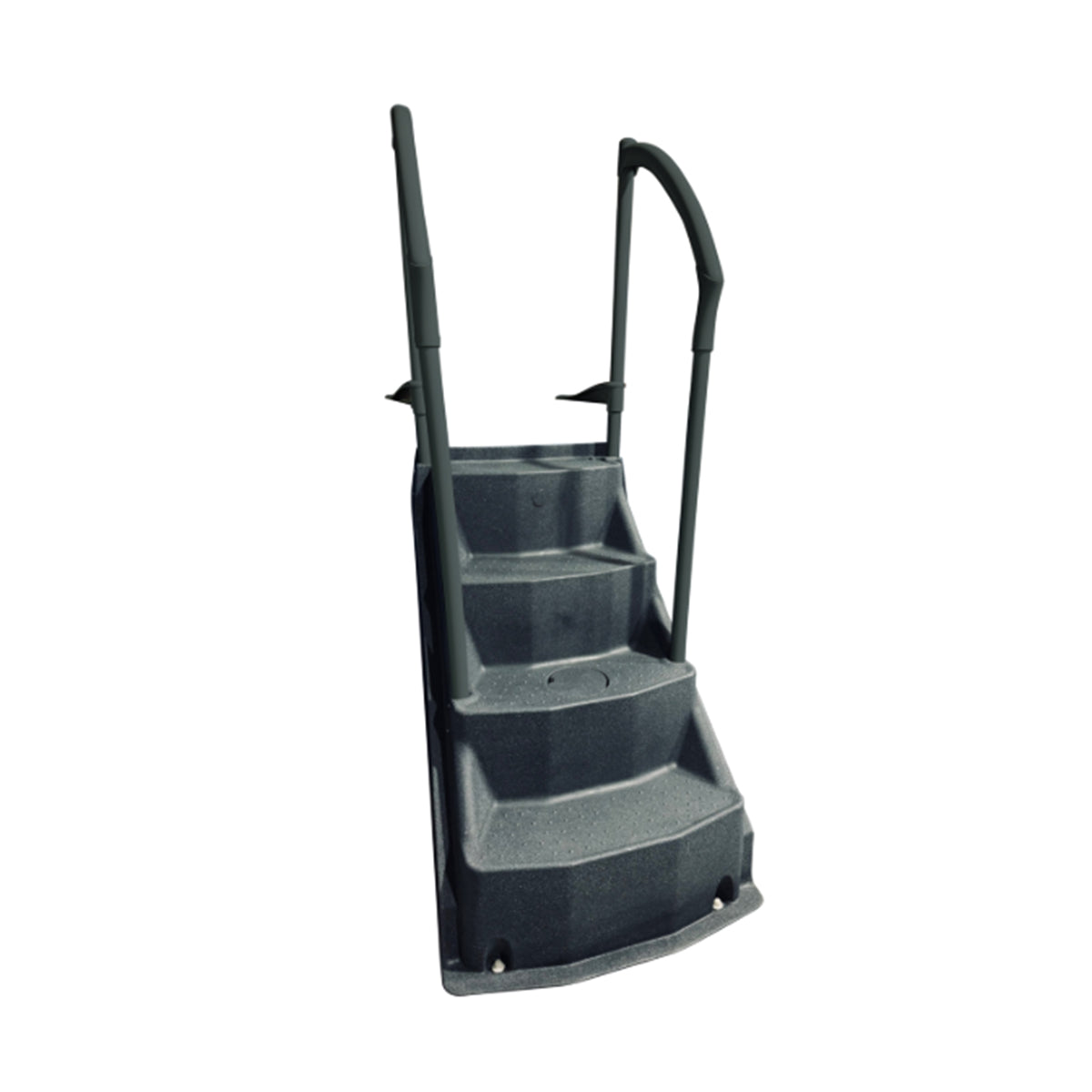Cette marche de couleur gris minuit combine stabilité, durabilité et élégance. Conçue pour s’adapter aux piscines hors terre de 48 à 54 pouces de hauteur, elle ne nécessite aucun sac de sable pour le lestage.